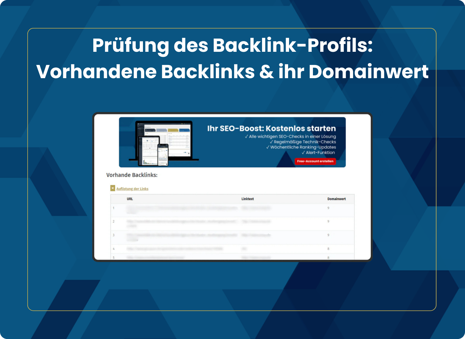 Ein Backlink-Check analysiert die Domains, die auf deineWebsite oder die deiner Konkurrenten verlinken. Er liefert eine Liste der verlinkenden Domains und bewertet deren Qualität. Da Google die Vertrauenswürdigkeit von Backlinks stark berücksichtigt, ist ein Überblick über das Backlink-Profil essenziell – sowohl für deine eigene Website als auch, um die Strategien deiner Mitbewerber zu verstehen. Mit unserem kostenlosen Backlink-Check kannst du problematische oder hochwertige Backlinks identifizieren, ohne persönliche Daten angeben zu müssen.