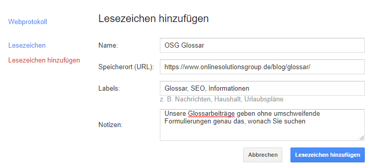 (c) Google Bookmark OSG Glossar