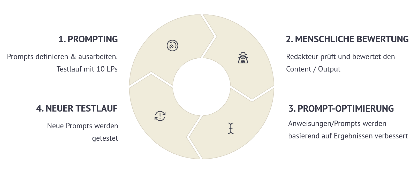Unser Ansatz verbindet strukturierte Templates, lokale Daten und einen fortlaufenden Verbesserungsprozess: