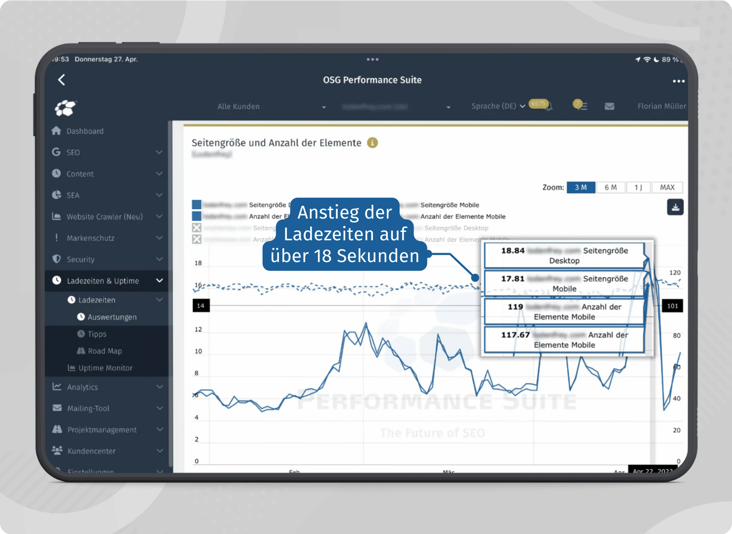 SEO lebt von Reaktionsgeschwindigkeit. Die Performance Suite überprüft mehrmals täglich die Ladezeiten, überwacht die Uptime und scannt wöchentlich nach technischen Fehlern. Bei Auffälligkeiten gehen Push- oder E-Mail-Alerts direkt an die verantwortlichen Personen.