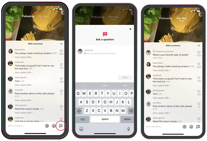 TikTok möchte mit der offiziellen Einführung der neuen Q&A Funktion mehr Interaktionen zwischen den Creators und ihren Fans erzeugen. Diese Funktion ermöglicht es den Usern, Fragen zu stellen, die dann innerhalb von Live-Broadcasts oder in zukünftigen Videoclips beantwortet werden können. Wir stellen Ihnen die neue Funktion vor: