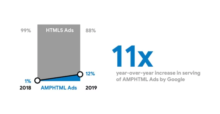 Von den Werbeanzeigen profitieren nicht nur Werbetreibende, sondern auch Publisher. Seit 2018 ist die Anzahl an AMP-HTML-Anzeigen um ein 11-faches gestiegen. Hintergrund hierfür ist auch, dass die Anzeigen nicht mehr nur auf AMP-Seiten erstellt werden können, sondern auch auf klassischen Webseiten. Jedoch ist auch ein Anstieg an AMP-Seiten zu messen auf welchen 35 % aller Anzeigen AMP-HTML sind.